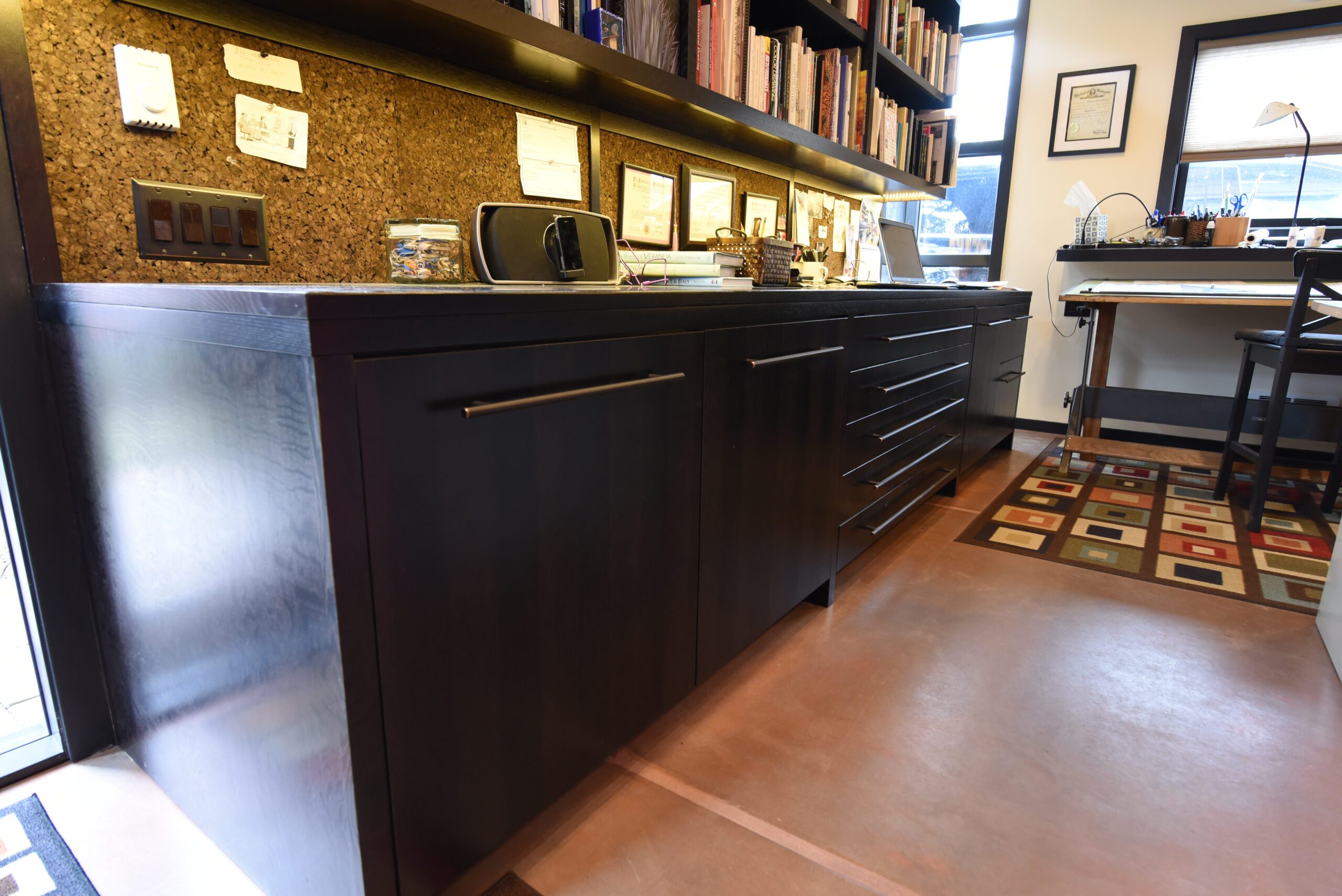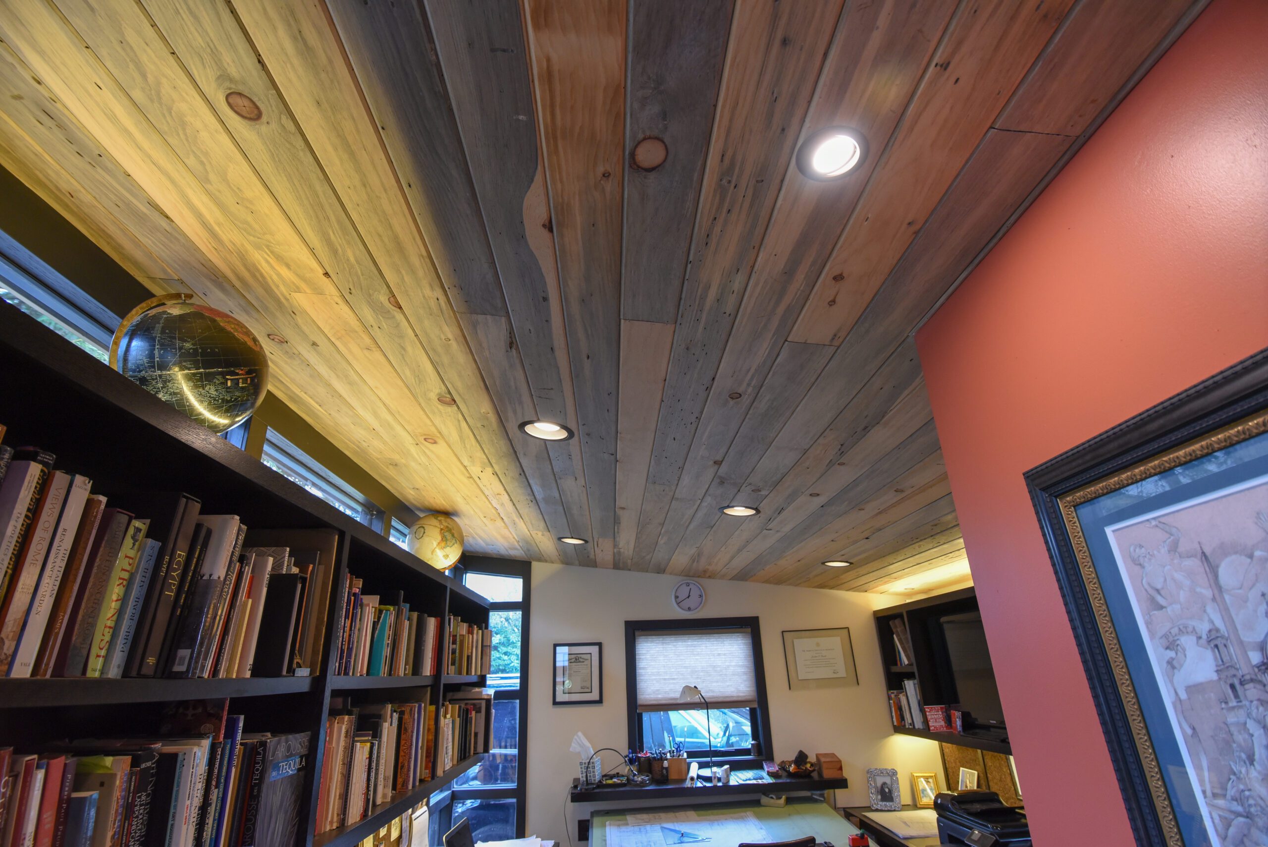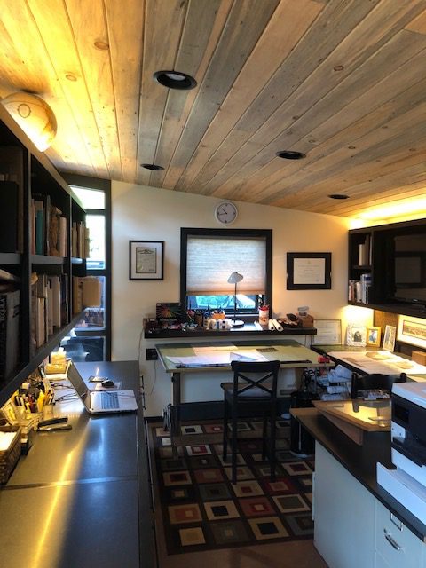 This small backyard Project gets a lot of attention from visitors and clients of JB Architecture. Studio Shed out of Colorado provides the ‘kit-of-parts’ components to choose from for the shed’s shell, and then JB composed the components and outfitted the interior to include custom cabinetry, a stained concrete floor and a beetle-kill pine ceiling. This 200 sf studio office has been a delightful convenience while working at home has increasingly become the norm these days.